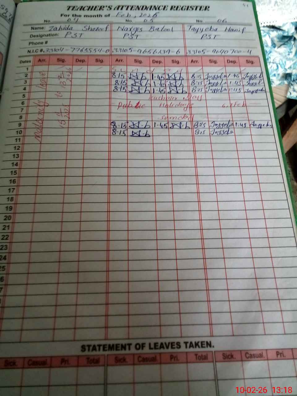 | Name: SH**** AK**** Designation: (School Headmaster's/Headmistress's) PST Phone/Cell Number: 03**** |