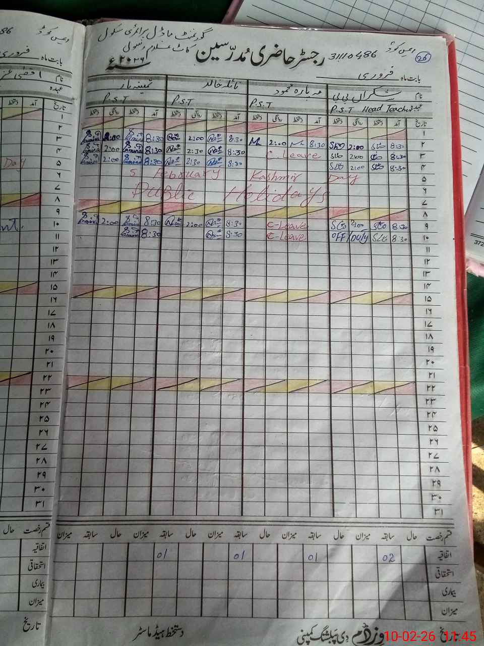 | 31**** | Aq**** Az**** | PST Science/Maths | Regular | 0 | 0 | 0 | 0 | 0 | 0 | 0 | 0 | 0 | Absent (Un-Authorized) |