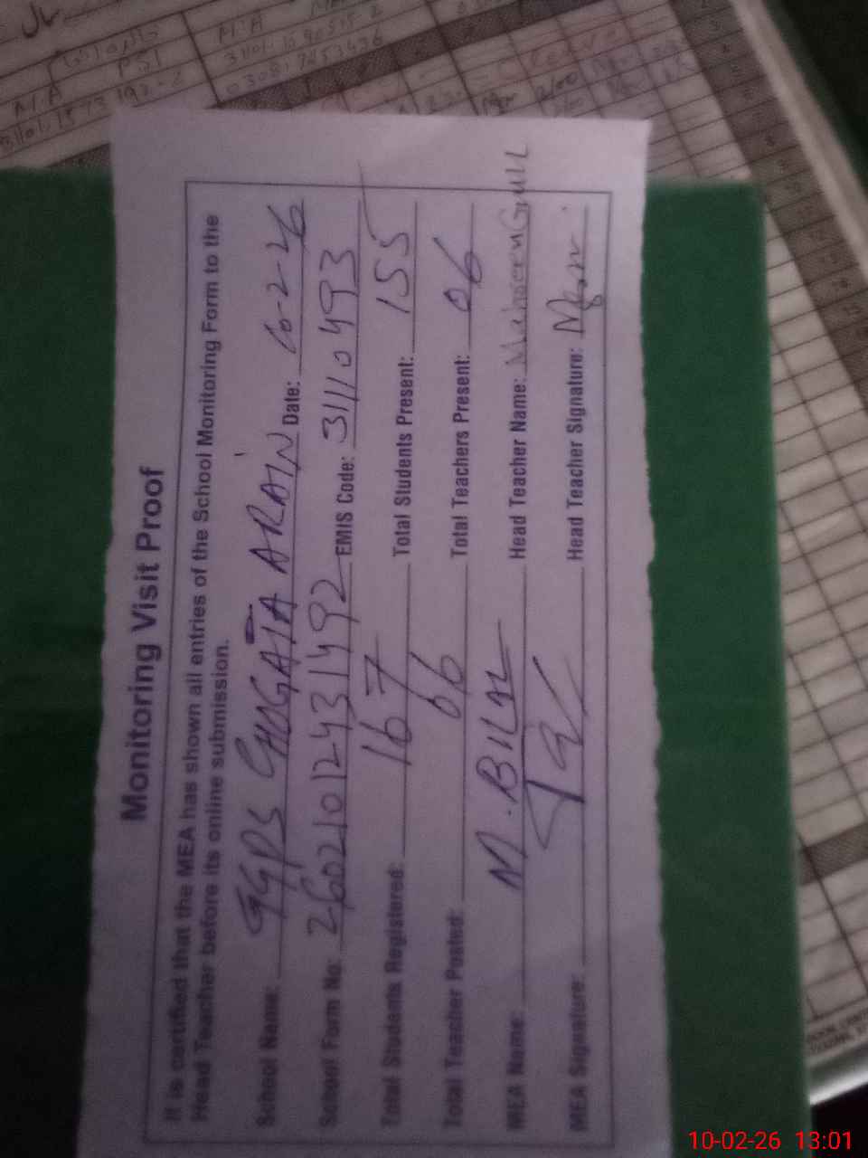 | EMIS Code: 31110493 | Name of School: GGPS CHOGATA ARAIN | |||