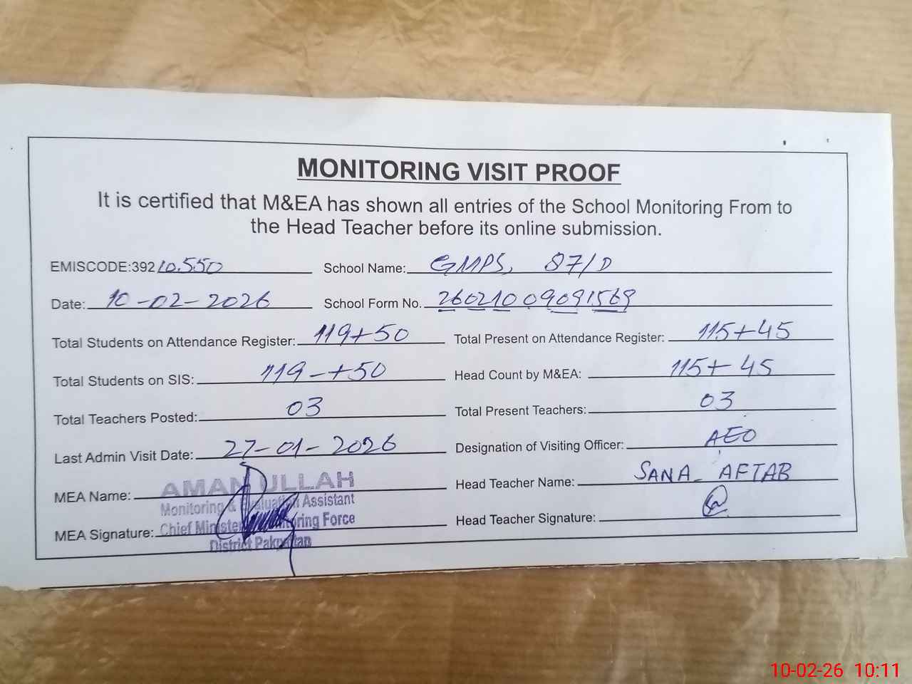 | EMIS Code: 39210550 | Name of School: GMPS 87/D | |||