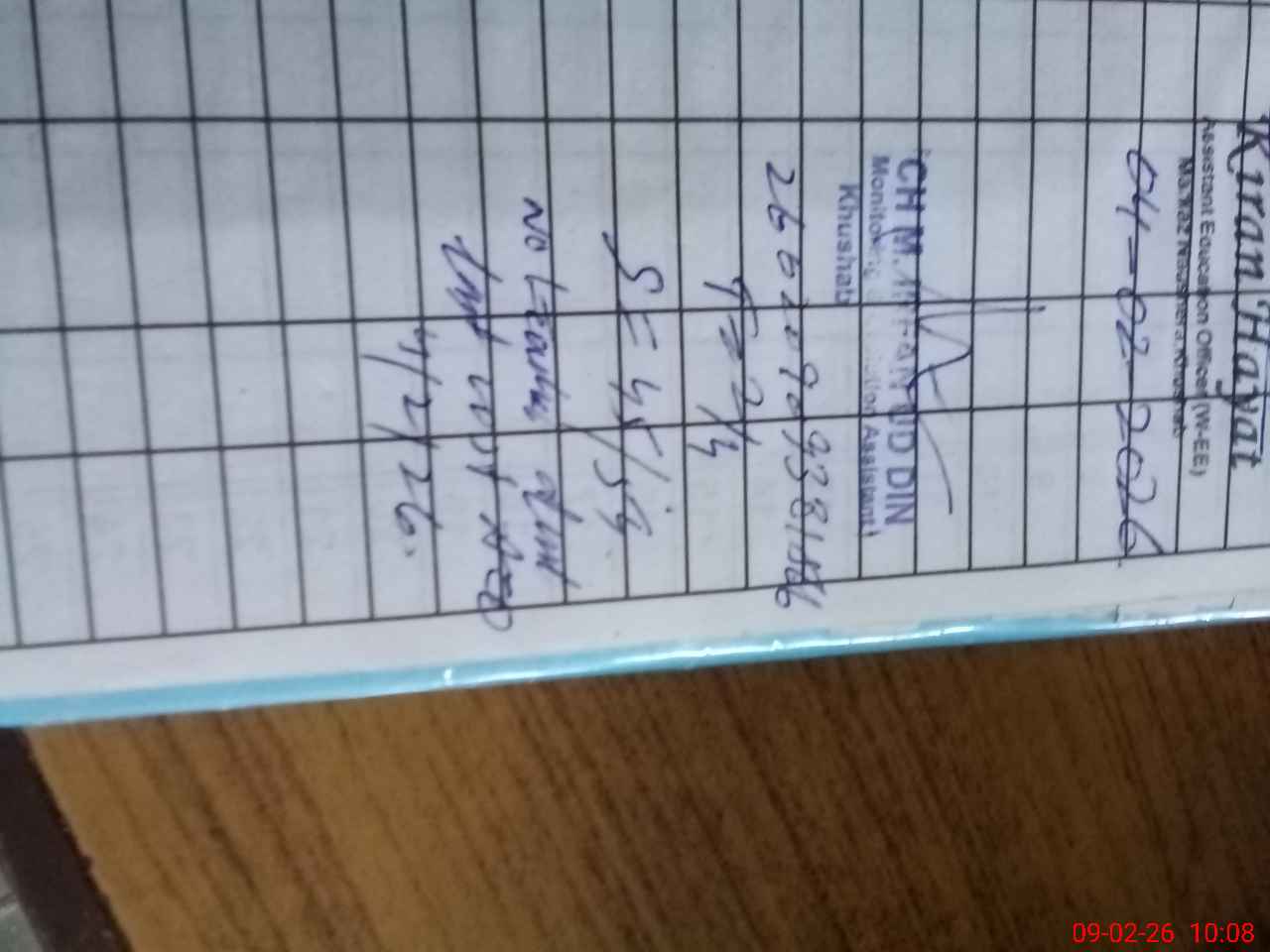 | Remarks (Use Separate Page if Required): ggps manawan student on sis 54 student on register 54 head count 45 no teacher absent 2 on leave last visit aeo 4/2/26 sc required classroom door need tobe changed class room required teacher ng staff required | |||||