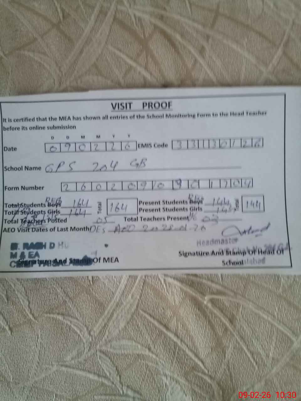 | EMIS Code: 33130126 | Name of School: GPS 204 GB | |||