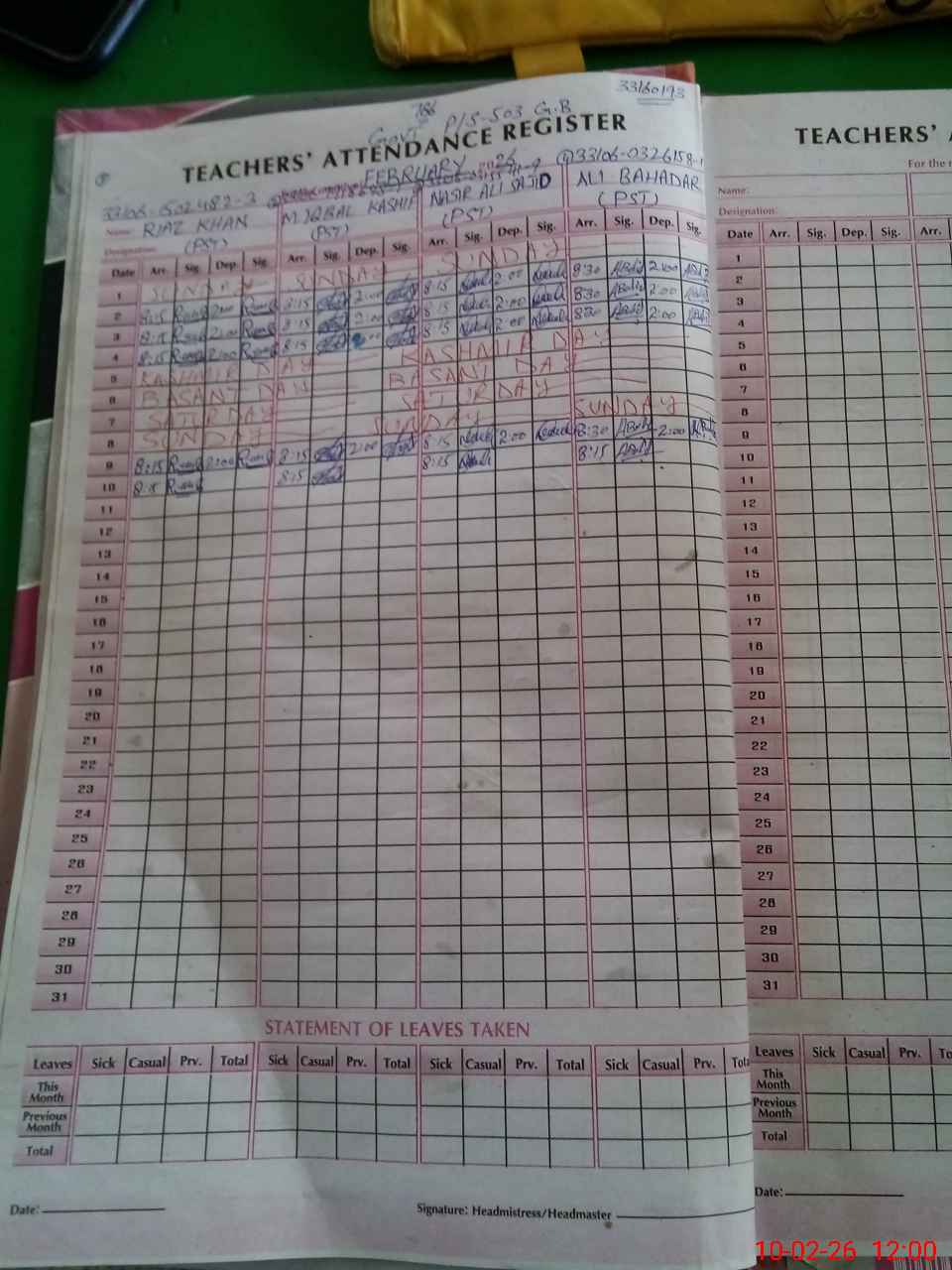| Name: RI**** KH**** Designation: (School Headmaster's/Headmistress's) PST Phone/Cell Number: 03**** |