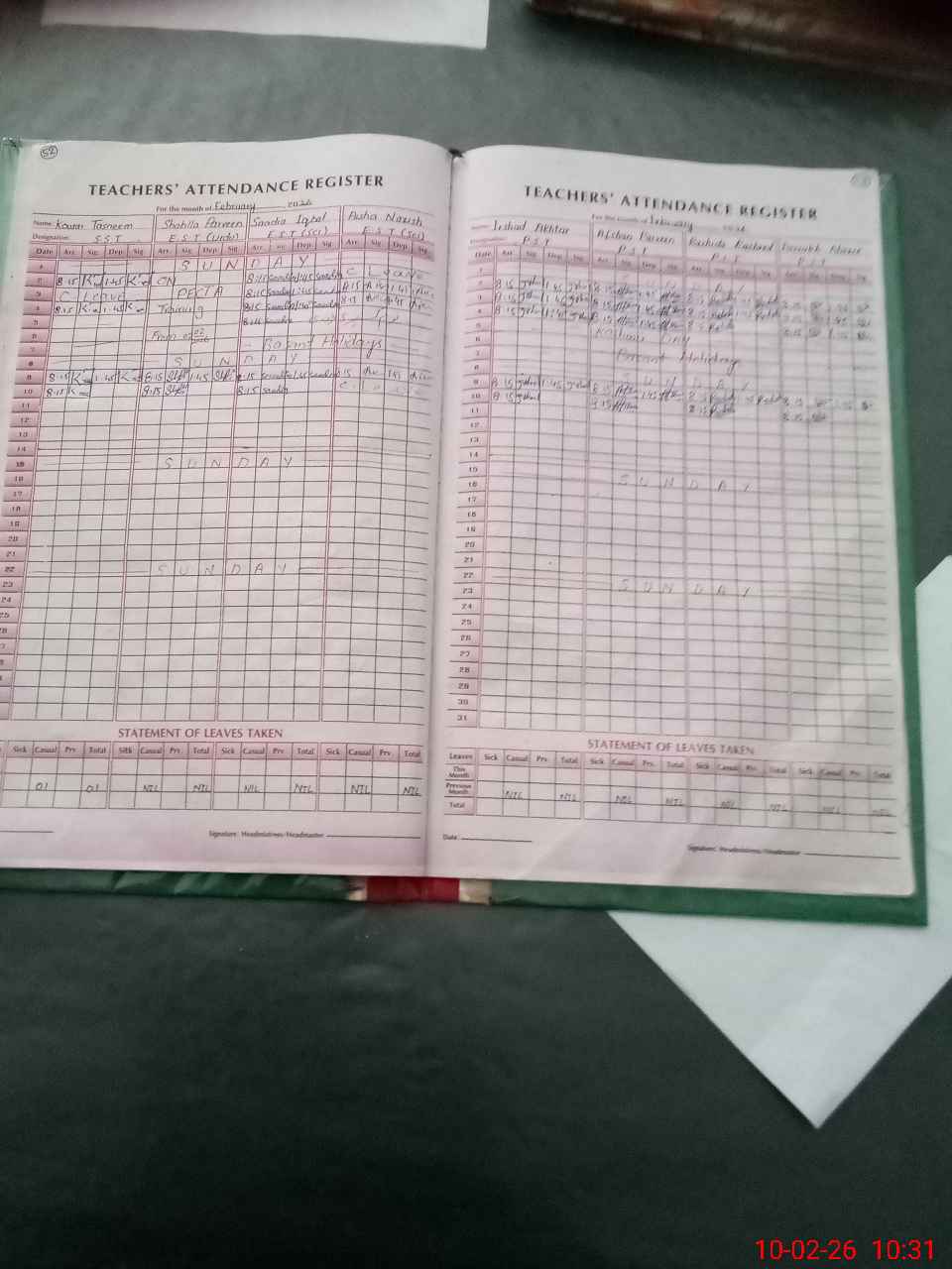 | 31**** | No**** As**** | EST (Math) | Regular | 0 | 0 | 0 | 0 | 0 | 0 | 0 | 0 | 0 | Absent (Un-Authorized) |