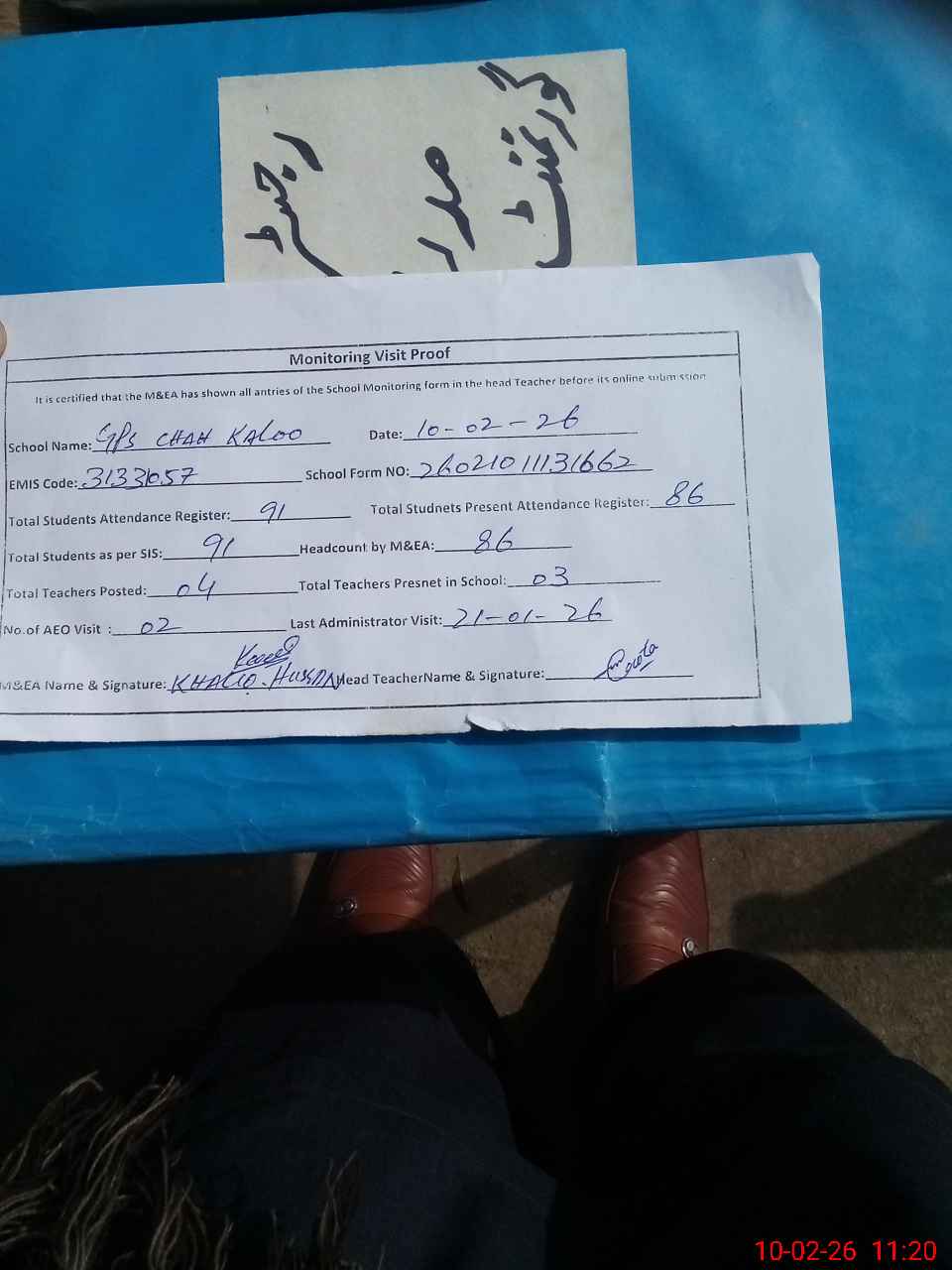 | Monitoring Date: 10-02-2026 | Start Time: 10-02-2026 10:57 AM | End Time: 10-02-2026 11:20 AM | Name of MEA: Kh**** Hu**** | |