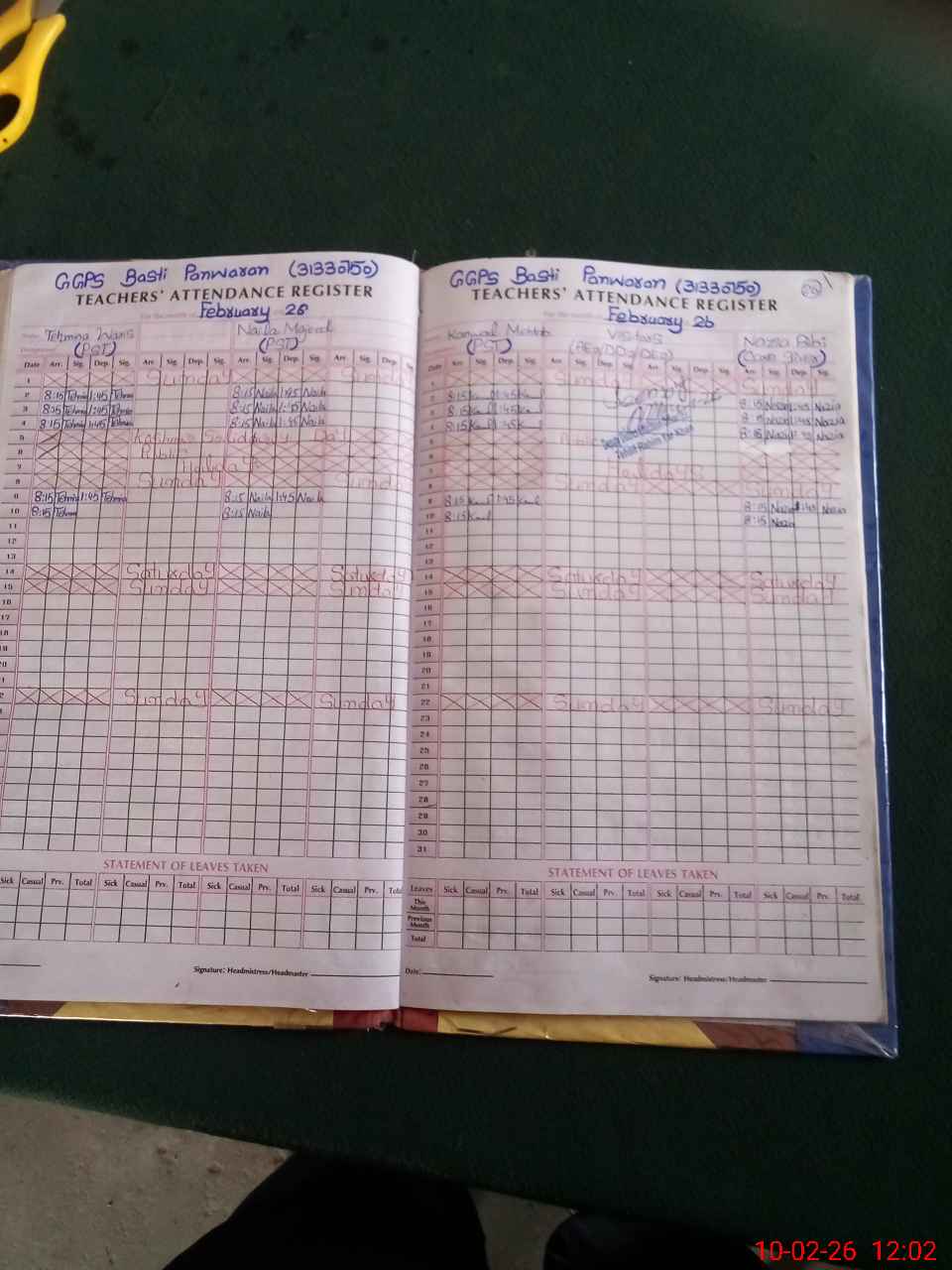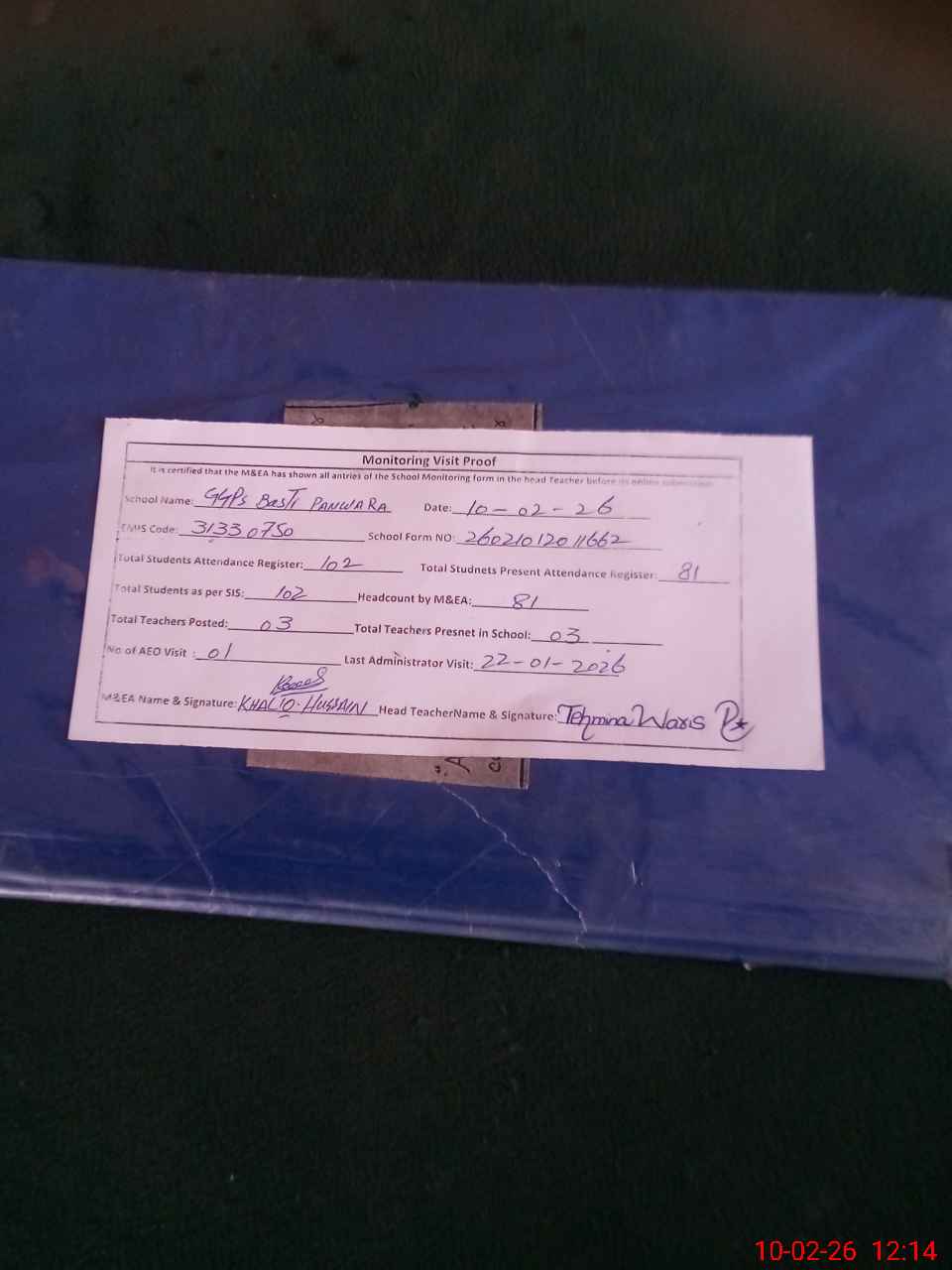 | Attendance Register | Head Teacher | MEA with School | Visit Proof |