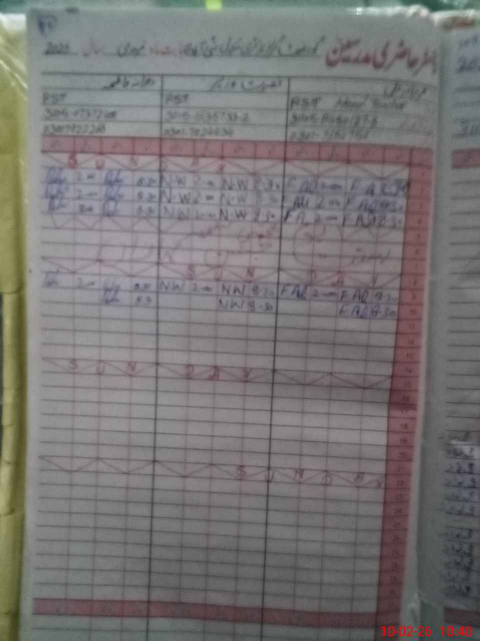 | CNIC | Full Name | Designation | R/C | Absence During Last Calender Month |
