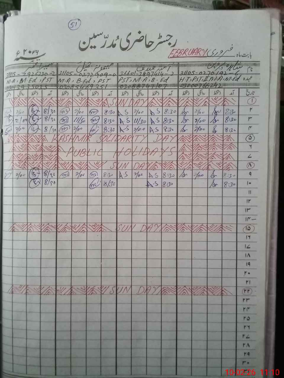 | Name: Sh**** Pe**** Designation: (School Headmaster's/Headmistress's) PST Phone/Cell Number: 03**** |