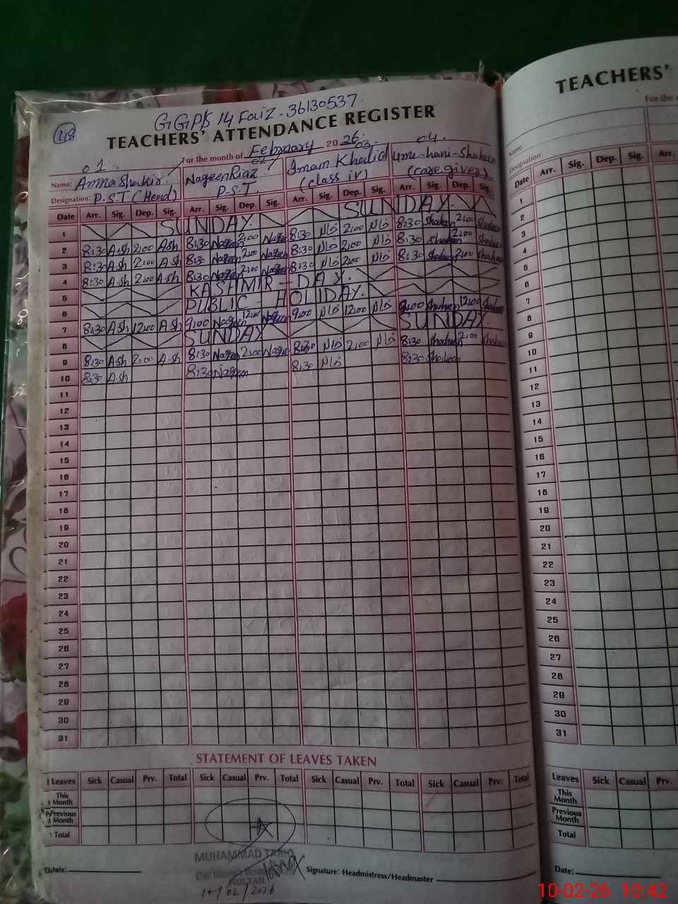 | Name: AM**** SH**** Designation: (School Headmaster's/Headmistress's) PST/PTC/JV Phone/Cell Number: 03**** |