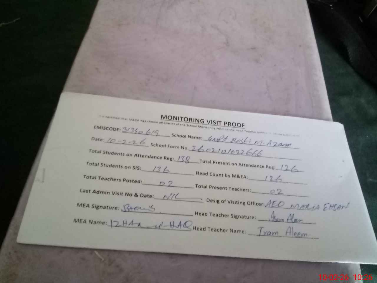 | EMIS Code: 31340619 | Name of School: GMPS BASTI MUHAMMAD AZAM | |||