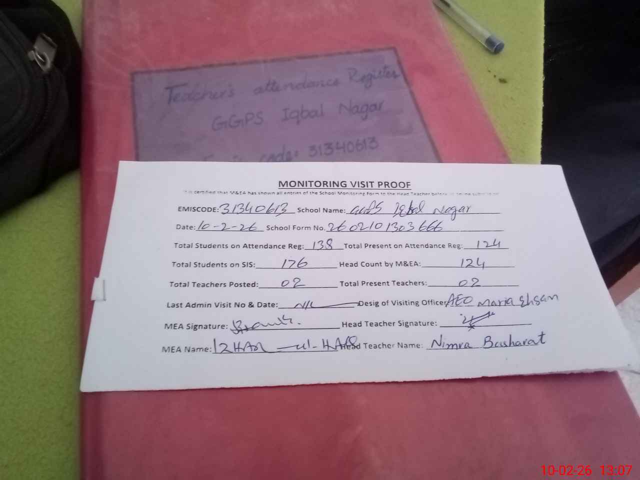 | EMIS Code: 31340613 | Name of School: GGPS IQBAL NAGAR | |||