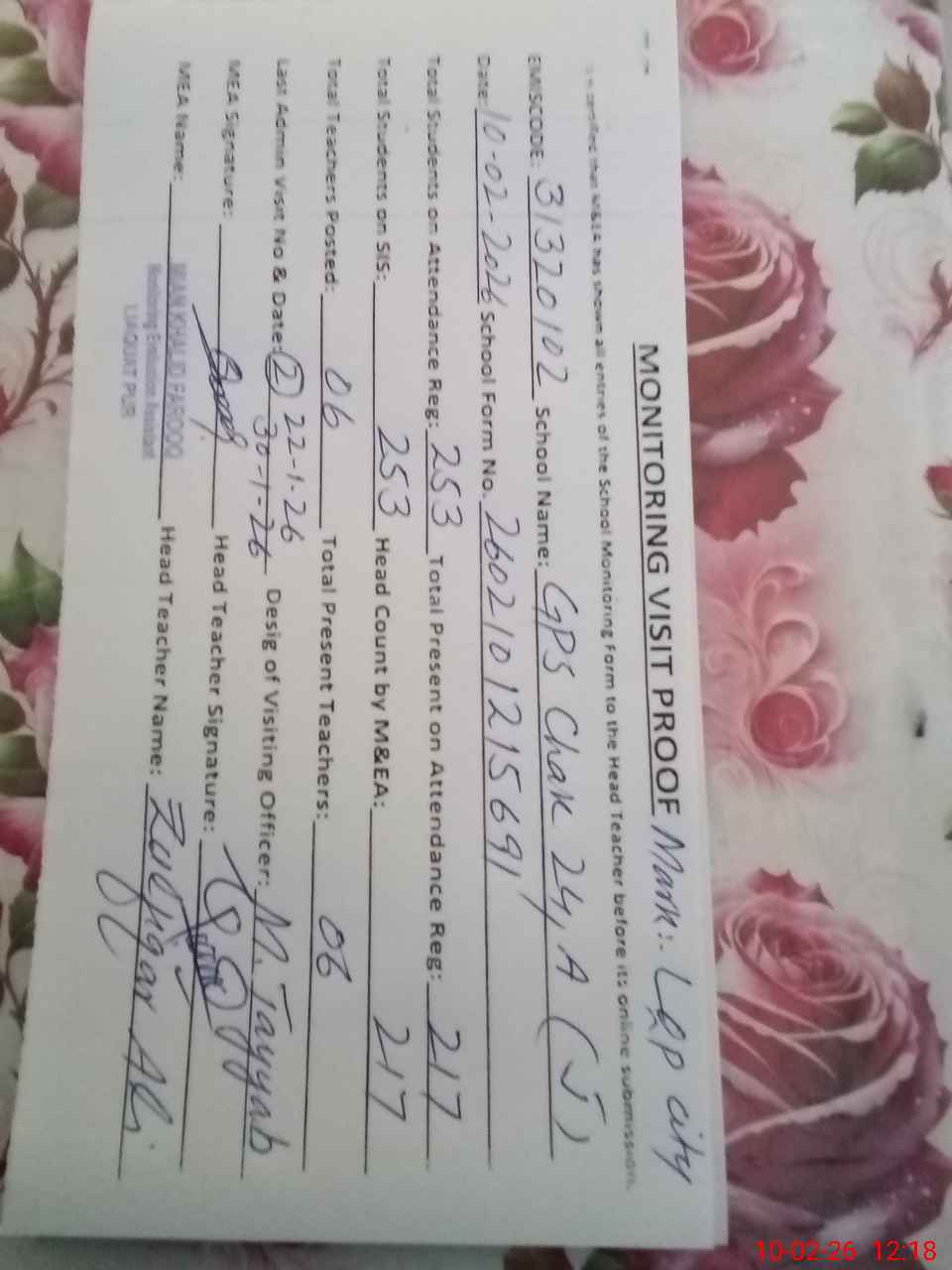 | EMIS Code: 31320102 | Name of School: GPS CHAK 24/A JADEED | |||