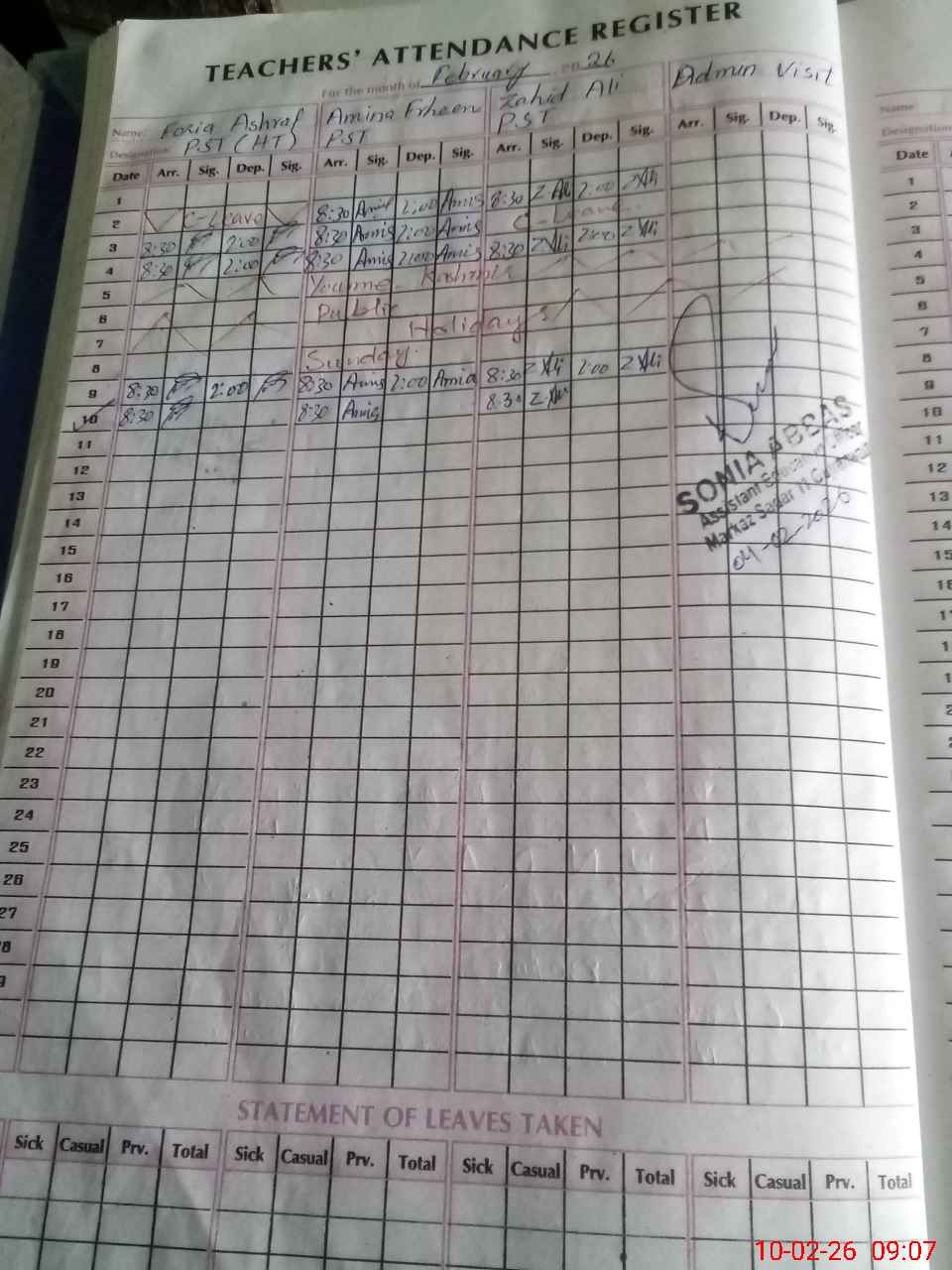 | Leave | Duty | Absent | Maternity | Medical | Ex- Pak |