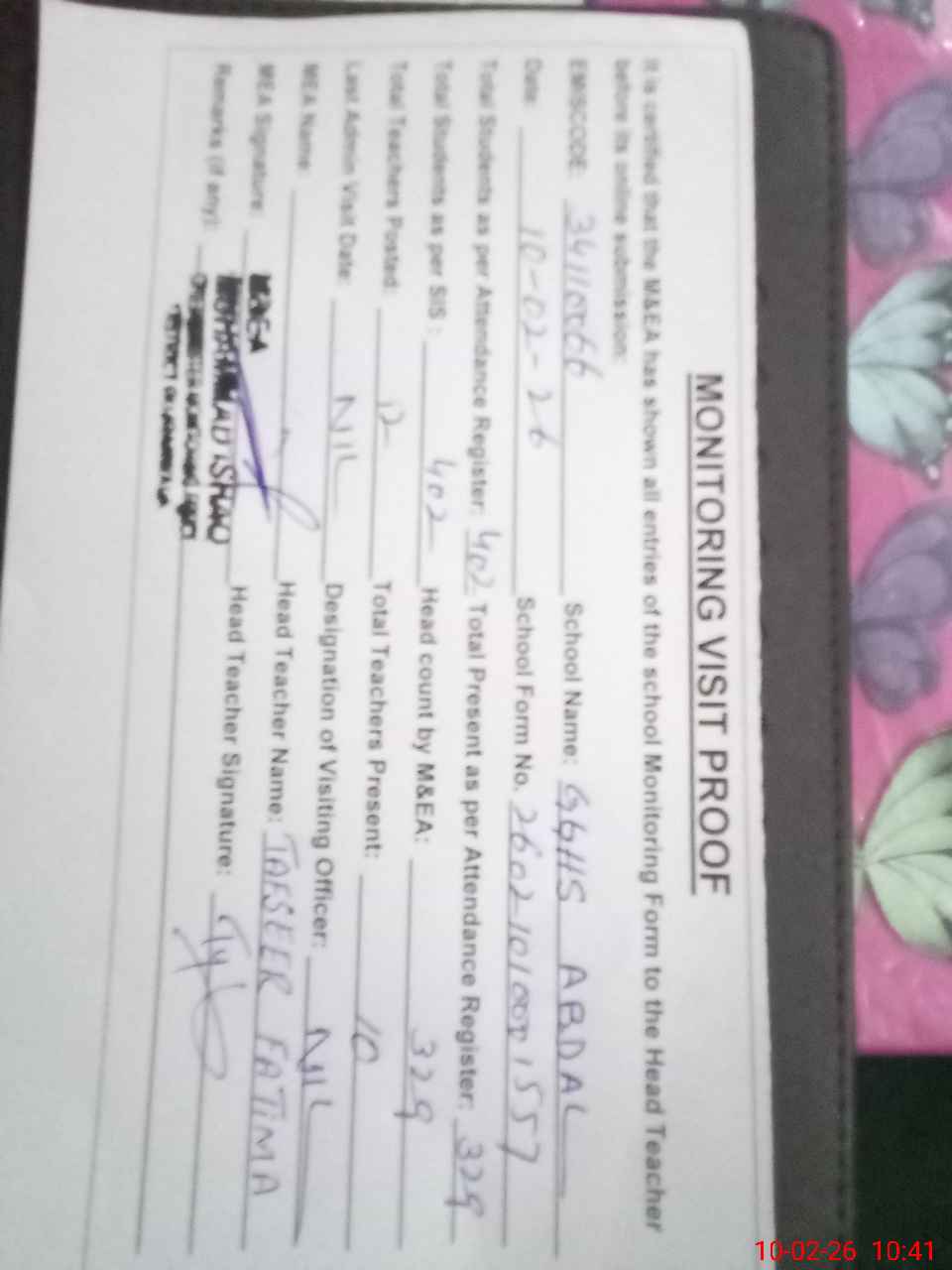 | EMIS Code: 34110066 | Name of School: GGHS ABDAL | |||