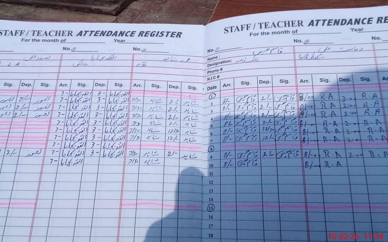 | CNIC | Full Name | Designation | R/C | Absence During Last Calender Month |