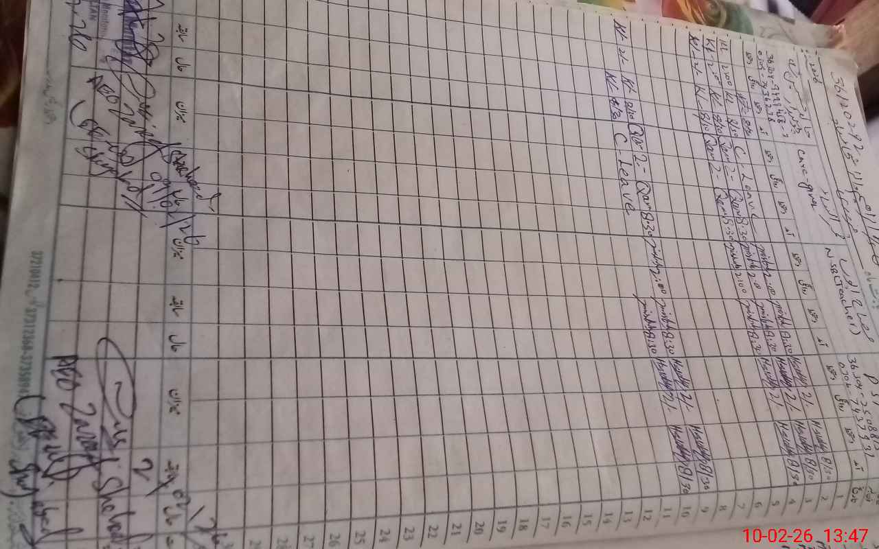 | CNIC | Full Name | Designation | R/C | Absence During Last Calender Month |