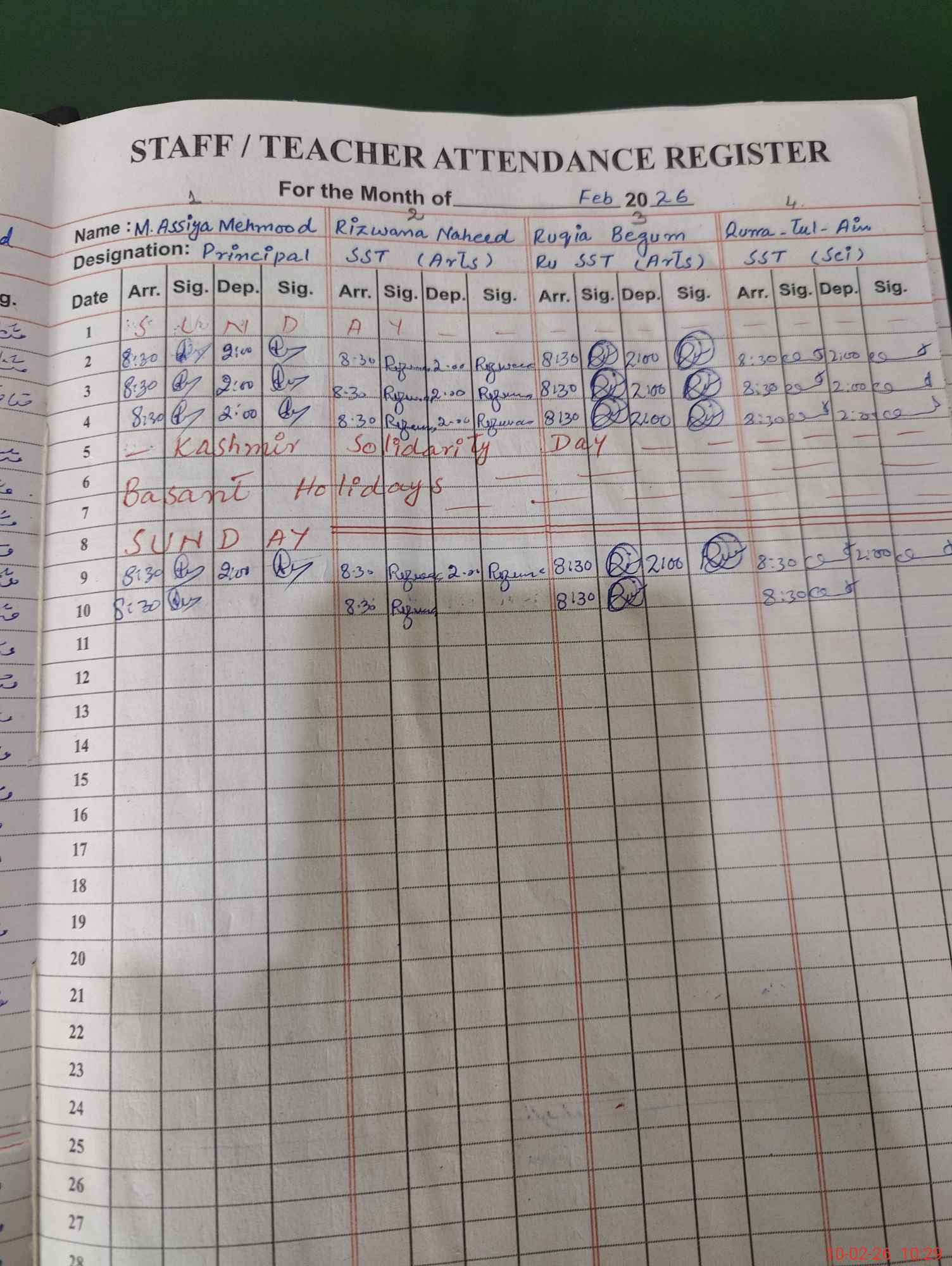 | Monitoring Date: 10-02-2026 | Start Time: 10-02-2026 09:15 AM | End Time: 10-02-2026 10:31 AM | Name of MEA: Na**** Sh**** | |