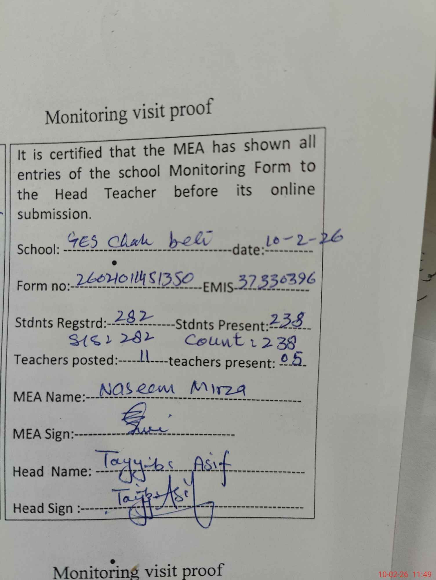 | EMIS Code: 37330396 | Name of School: GES CHAK BELI KHAN | |||