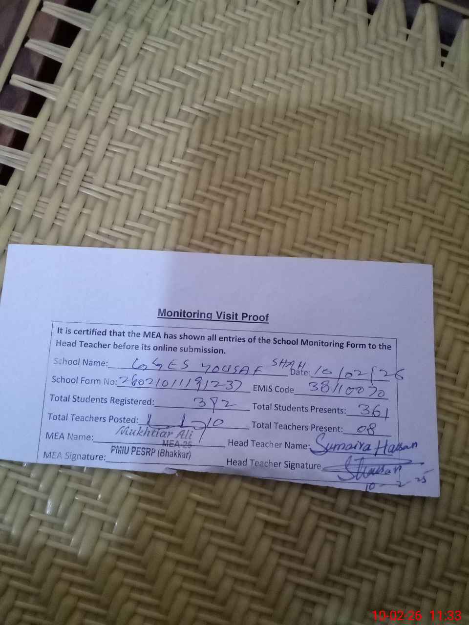 | EMIS Code: 38110070 | Name of School: GGES YOUSAF SHAH | |||