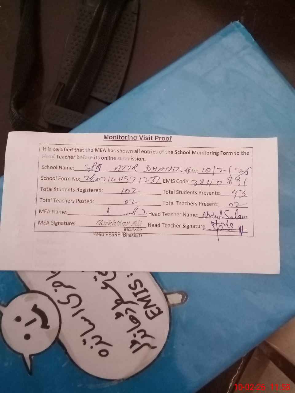 | EMIS Code: 38110891 | Name of School: GPS BASTI ATTAR DHANDLA | |||