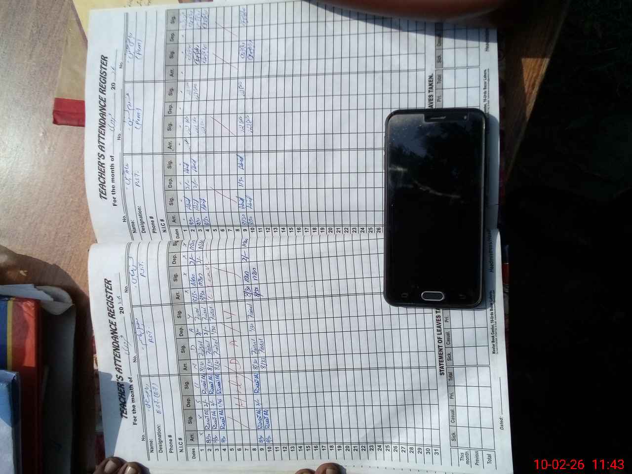 | CNIC | Full Name | Designation | R/C | Absence During Last Calender Month |