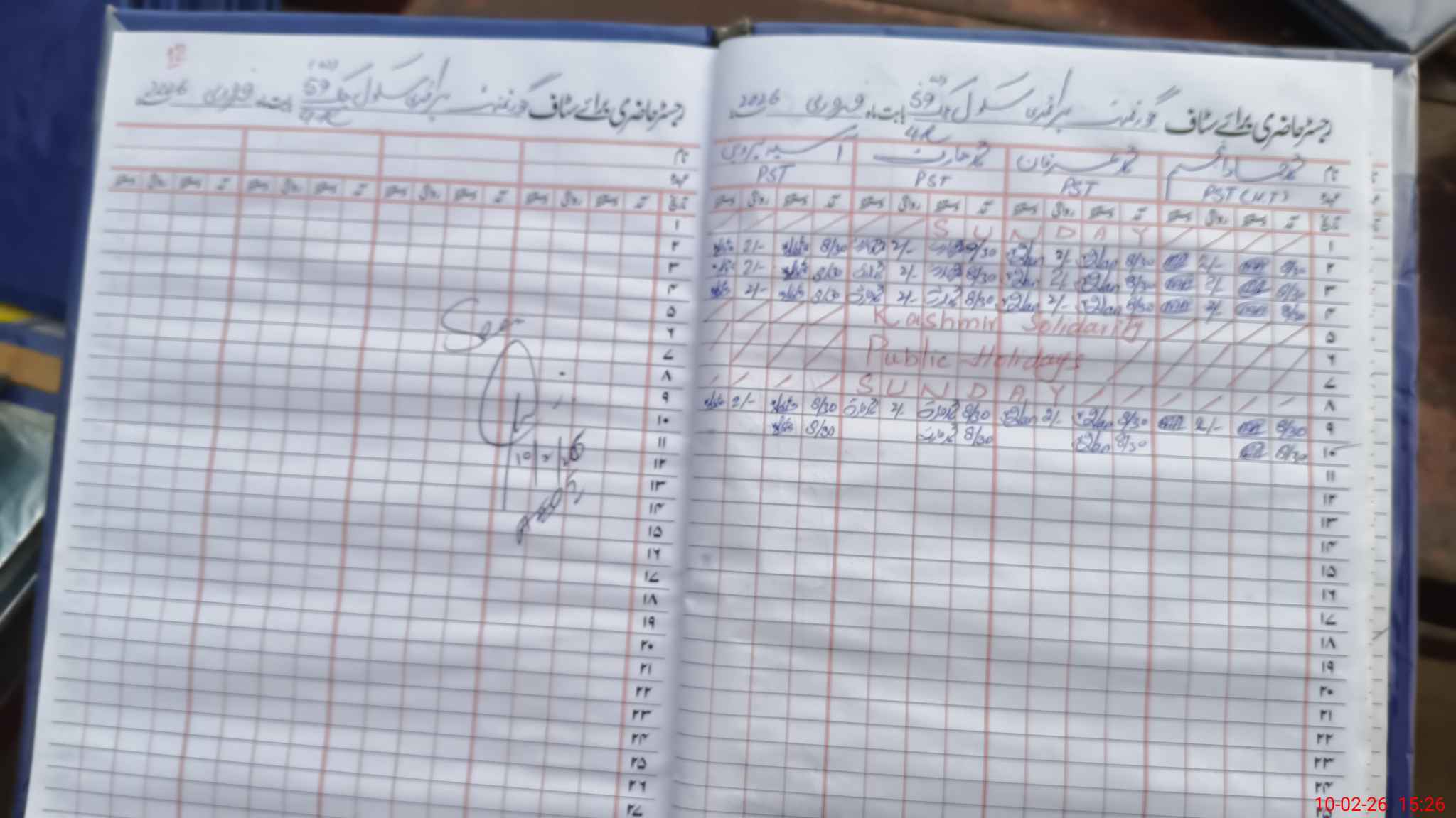 | CNIC | Full Name | Designation | R/C | Absence During Last Calender Month |