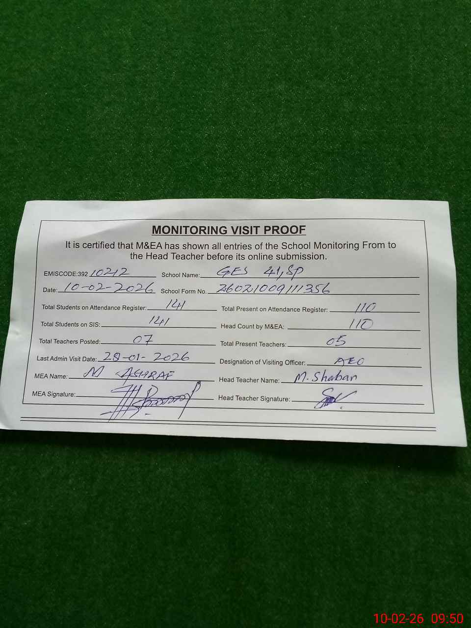 | EMIS Code: 39210212 | Name of School: GES 41 SP | |||