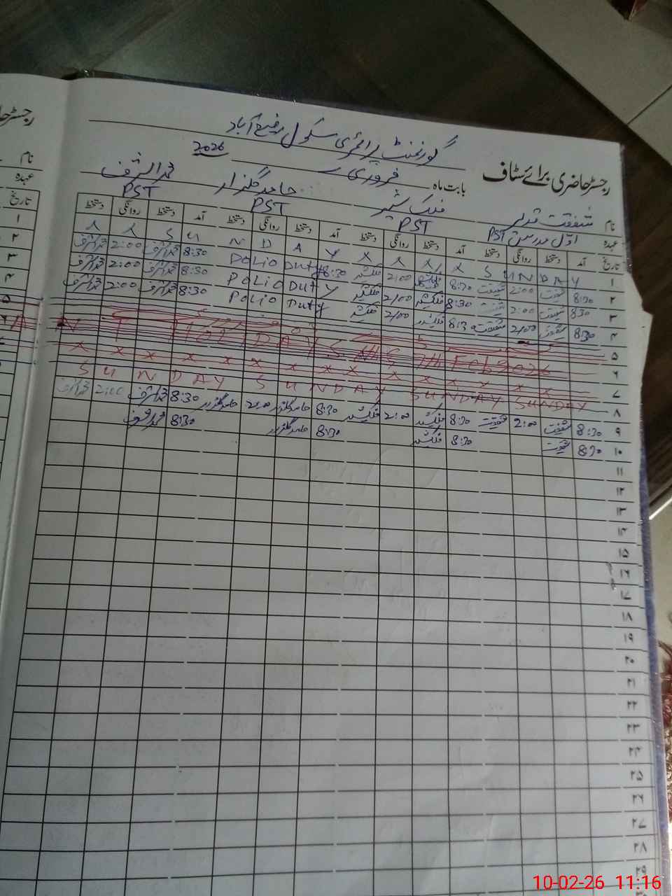 | Leave | Duty | Absent | Maternity | Medical | Ex- Pak |