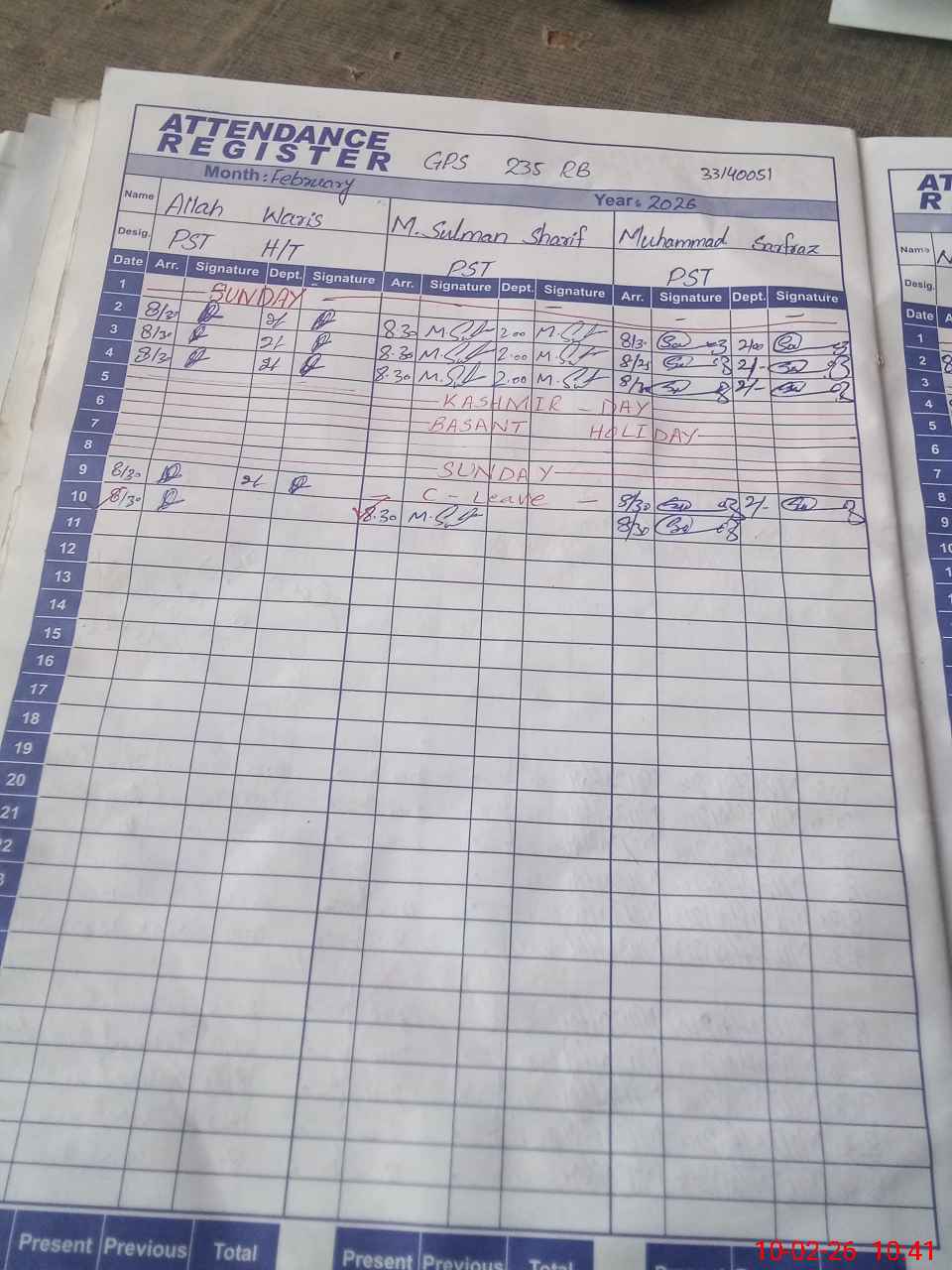 | Name: AL**** WA**** Designation: (School Headmaster's/Headmistress's) PST/PTC/JV Phone/Cell Number: 03**** |