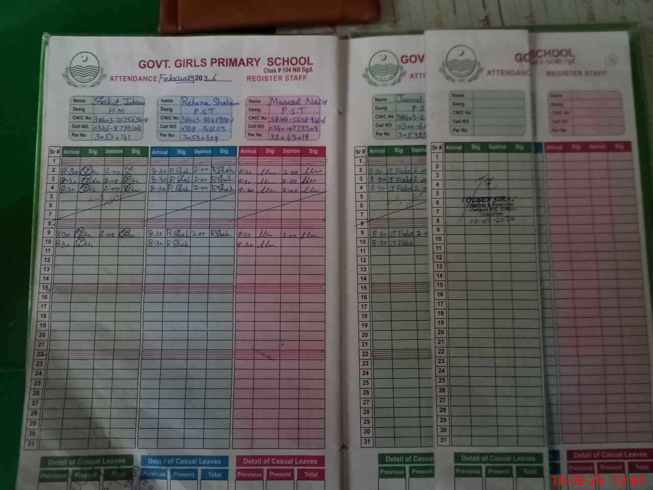 | CNIC | Full Name | Designation | R/C | Absence During Last Calender Month |