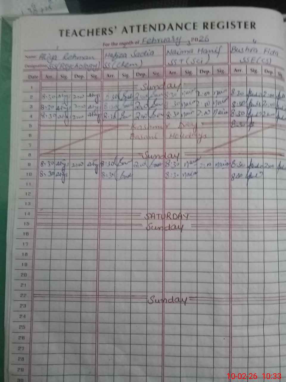 | Monitoring Date: 10-02-2026 | Start Time: 10-02-2026 09:34 AM | End Time: 10-02-2026 10:40 AM | Name of MEA: MU**** AH**** KH**** | |