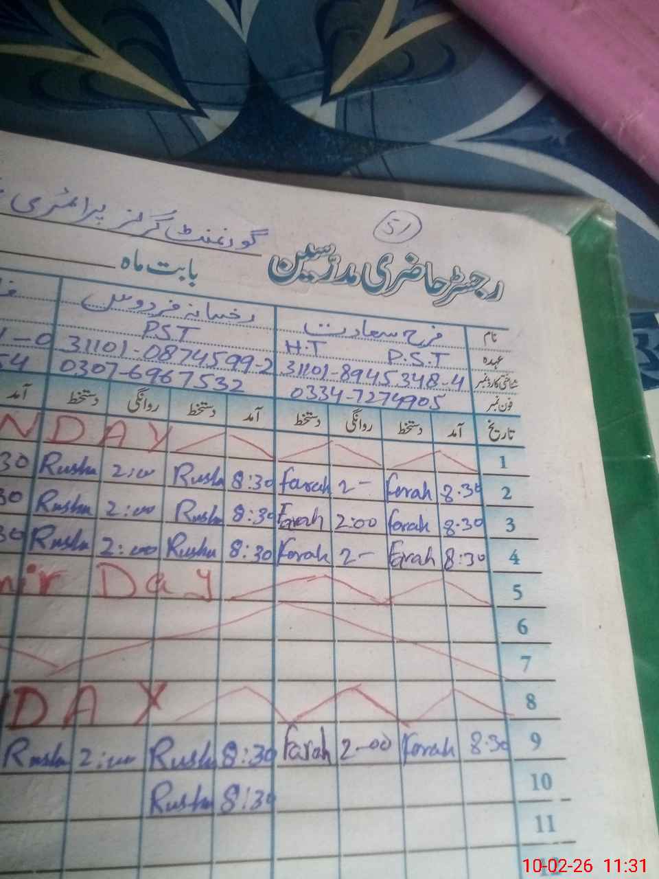 | Name: FA**** SA**** Designation: (School Headmaster's/Headmistress's) PST Phone/Cell Number: 03**** |