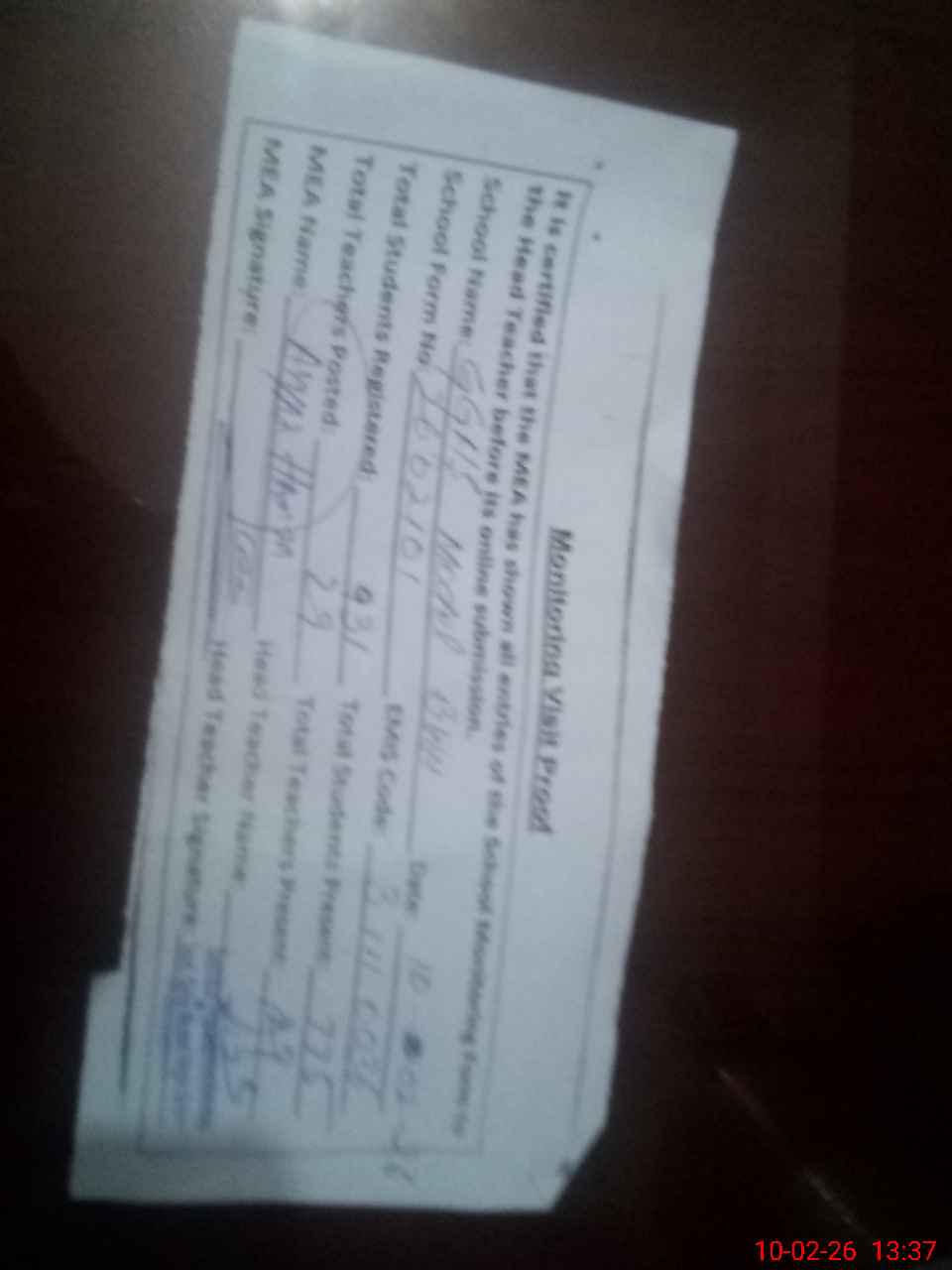 | Certified that this School was Inspected by the Undersigned MEA/DMO Today and the Information Stated Above is as Per Record. | |||||