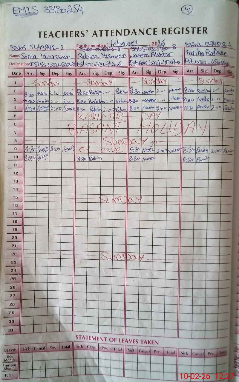 | Name: SO**** TA**** Designation: (School Headmaster's/Headmistress's) EST (SCIENCE) Phone/Cell Number: 03**** |