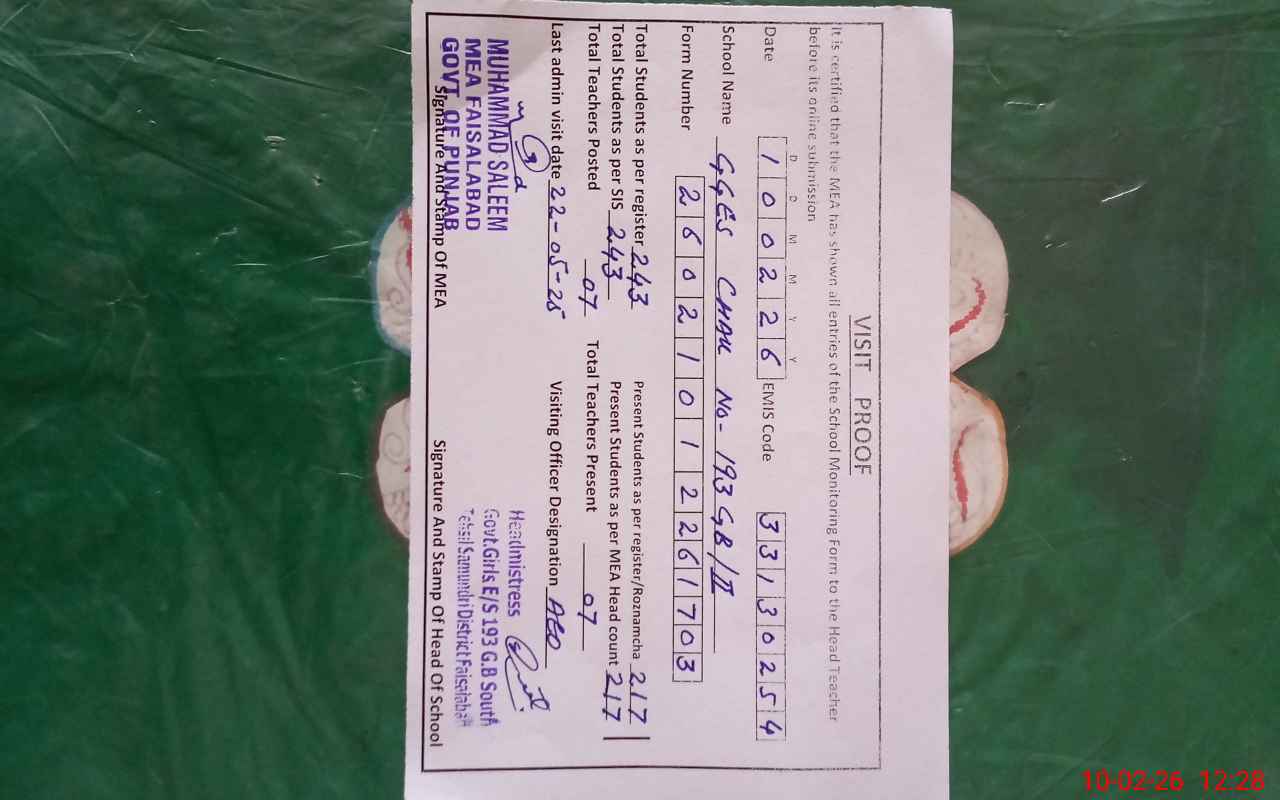 | EMIS Code: 33130254 | Name of School: GGES CHAK 193 II SAMNDRI | |||