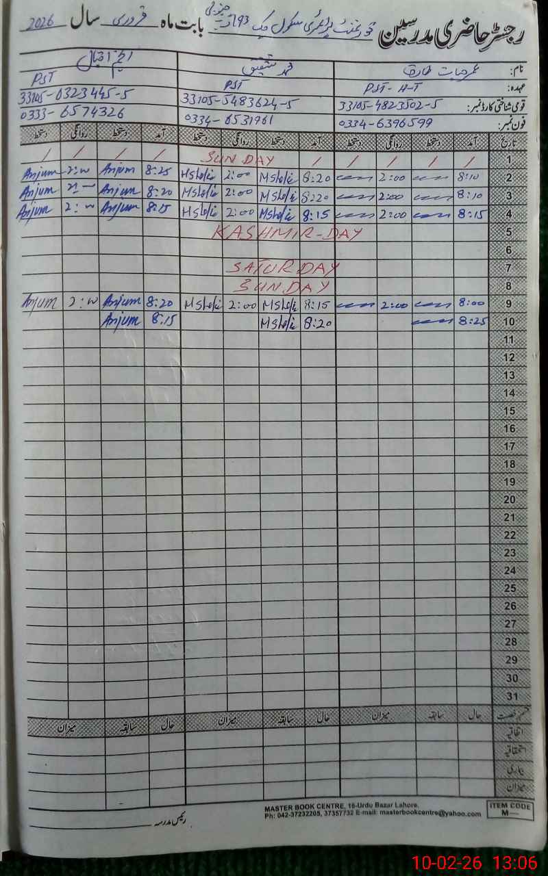 | Name: UM**** HA**** TA**** Designation: (School Headmaster's/Headmistress's) PST Phone/Cell Number: 03**** |