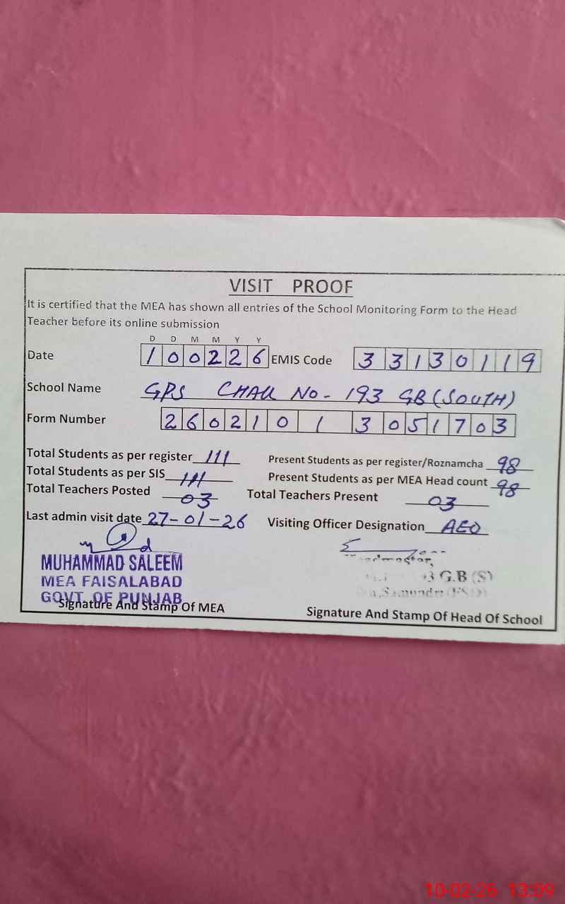 | EMIS Code: 33130119 | Name of School: GPS 193 GB S | |||