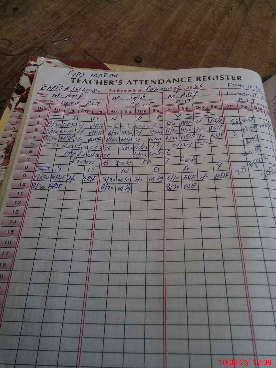 | Name: MAr**** Designation: (School Headmaster's/Headmistress's) PST Phone/Cell Number: 03**** |
