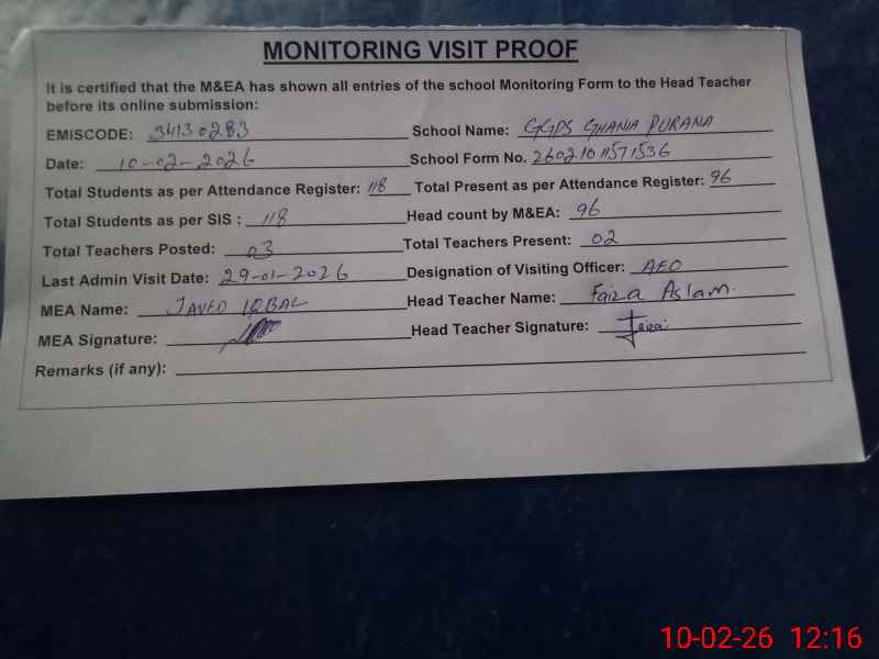 | EMIS Code: 34130283 | Name of School: GGPS GHANIA PURANA KHONA | |||
