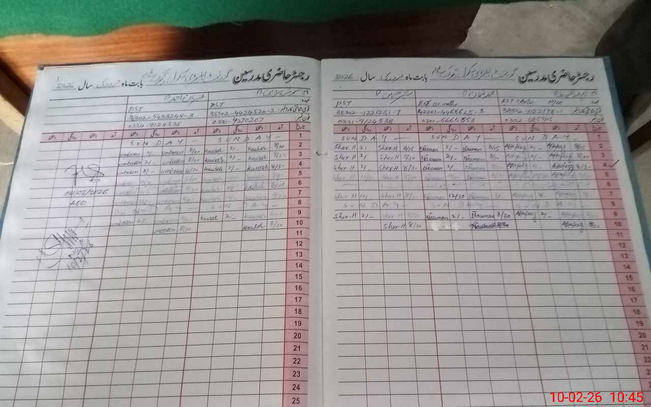 | Name: AB**** HA**** Designation: (School Headmaster's/Headmistress's) EST Phone/Cell Number: 03**** |