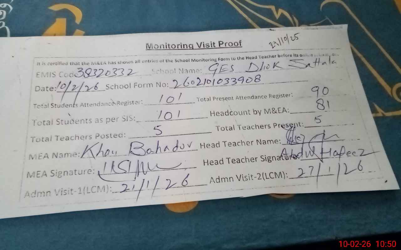| EMIS Code: 38320332 | Name of School: GES DHOK SATTALA | |||