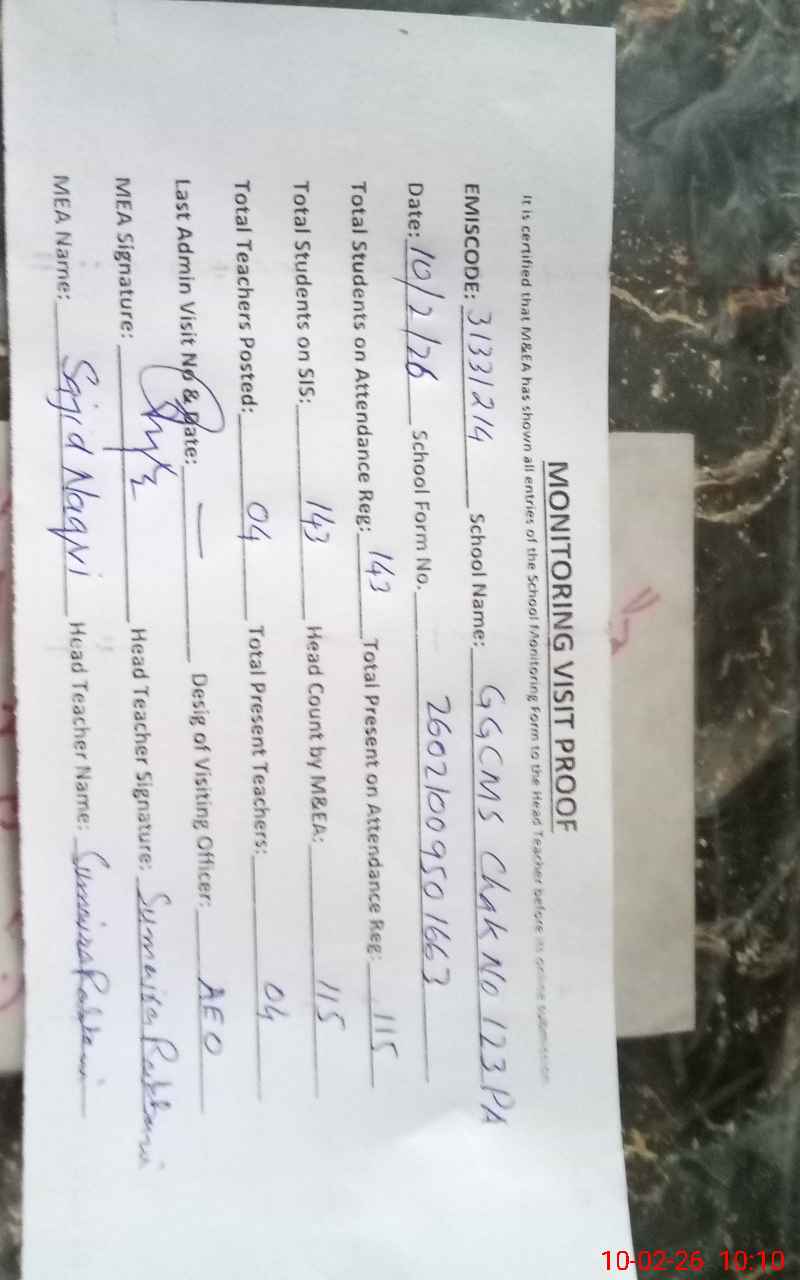 | EMIS Code: 31331214 | Name of School: GGCMS CHAK NO.123/P-A | |||