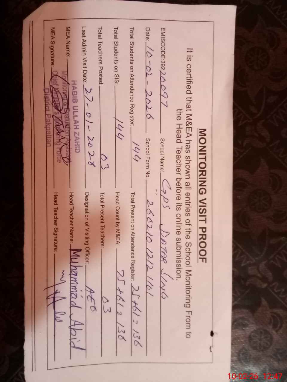| EMIS Code: 39220097 | Name of School: GPS DATAR SINGH | |||