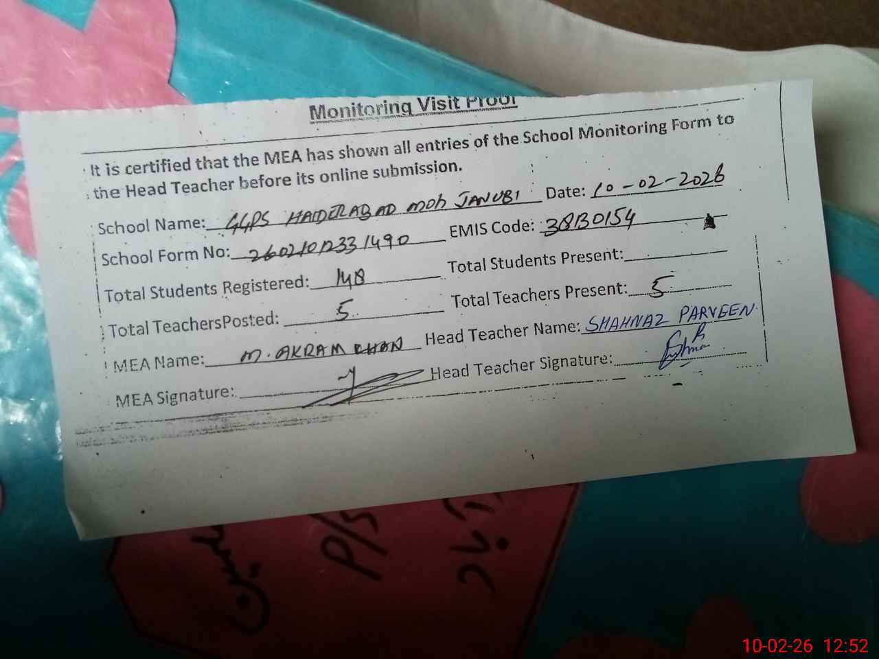| EMIS Code: 38130154 | Name of School: GGPS HAIDER ABAD MOHALLA JANUBI | |||