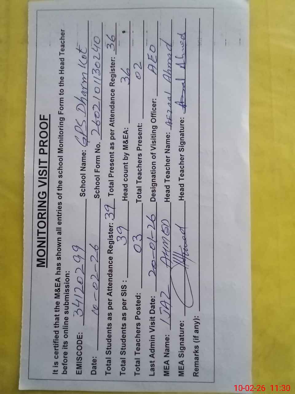 | EMIS Code: 34120299 | Name of School: GPS DHARAM KOT | |||
