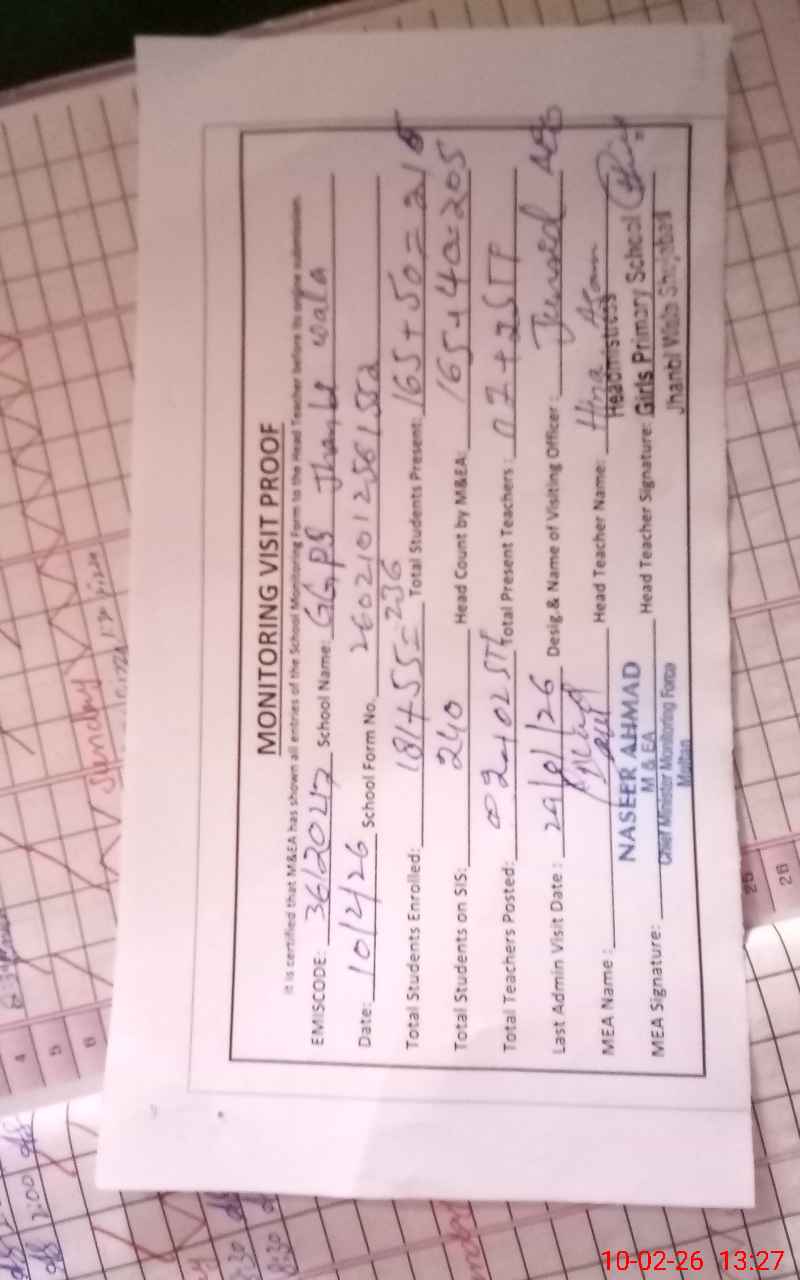 | EMIS Code: 36120217 | Name of School: GGPS JHANBI WALA SHUJABAD DISTT. MULTAN | |||