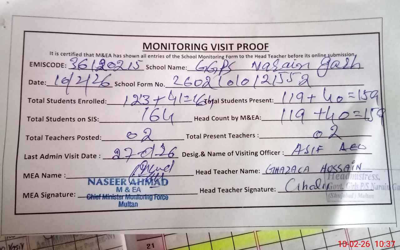 | EMIS Code: 36120215 | Name of School: GGPS NARAIN GRAH BASTI BANGALA SHUJABAD | |||