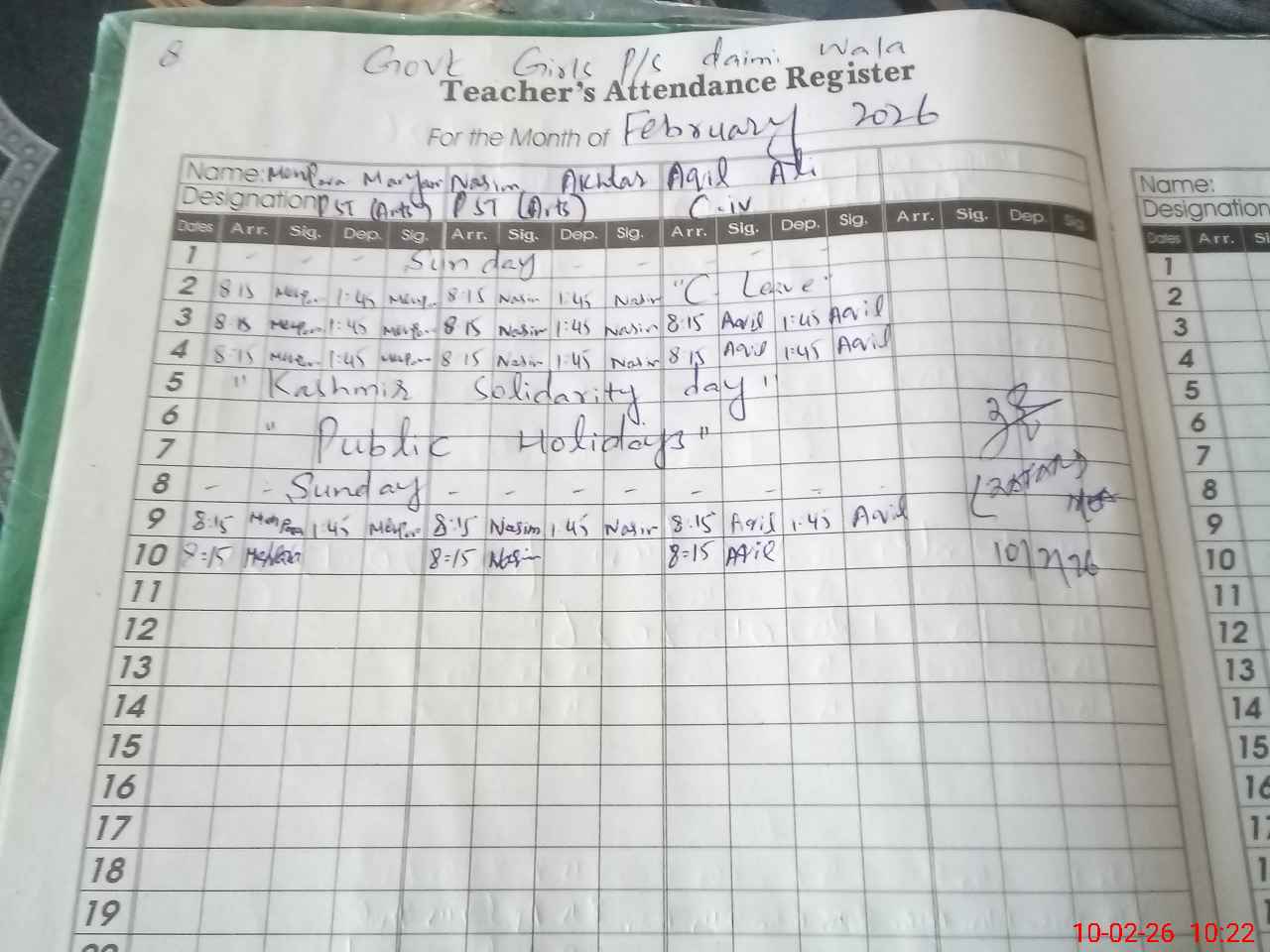| Monitoring Date: 10-02-2026 | Start Time: 10-02-2026 09:48 AM | End Time: 10-02-2026 10:25 AM | Name of MEA: MU**** ZA**** IQ**** | |