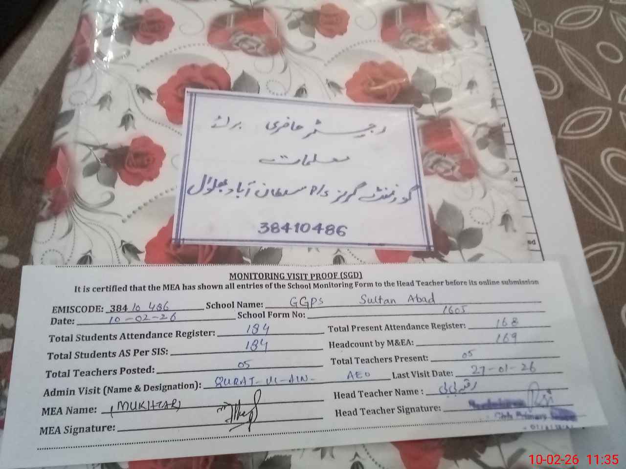 | EMIS Code: 38410486 | Name of School: GGPS SULTAN ABAD | |||