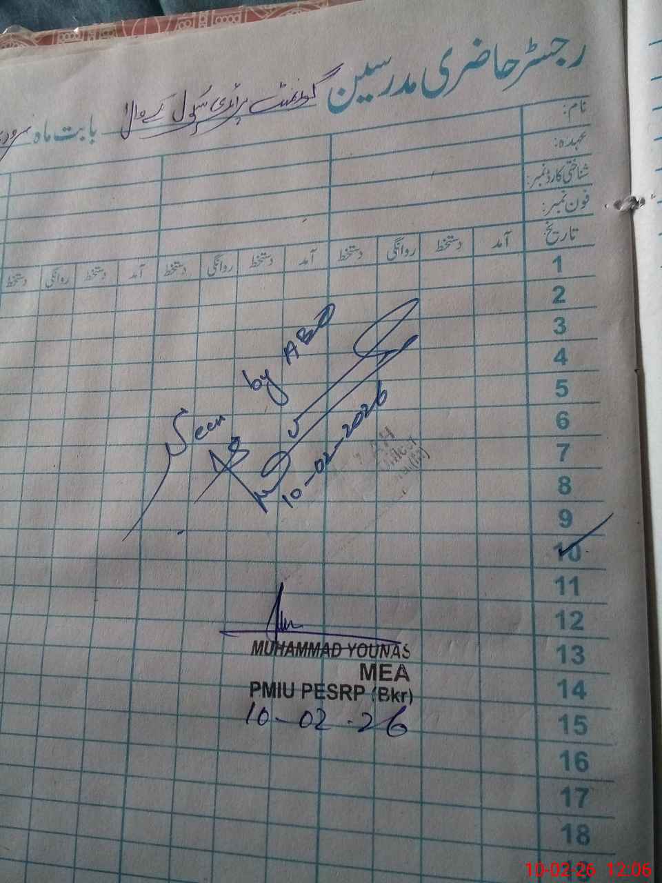 | Name: Mu**** Sa**** Designation: (School Headmaster's/Headmistress's) PST Phone/Cell Number: 03**** |